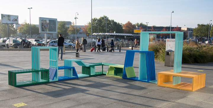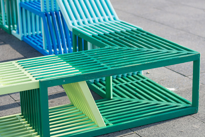 Взаимосвязанные модули этой уличной мебели от польского дизайнера Izabela Bołoz представляются, как гибкая гостиная для членов общественности, чтобы сидеть, лежать, или забираться на неё. Автор проекта, которая в настоящее время базируется в Эйндховене, создала пересечённые элементы, так что пользователи могут сами решить, что им здесь можно делать: познакомиться с кем-нибудь и пообщаться, просто посидеть в тишине и расслабиться, или подняться и поиграть. Начиная от 45- и заканчивая 180-сантиметровыми блоками в высоту, каждая часть сделана из серии одинаковых геометрических деревянных рамок.
