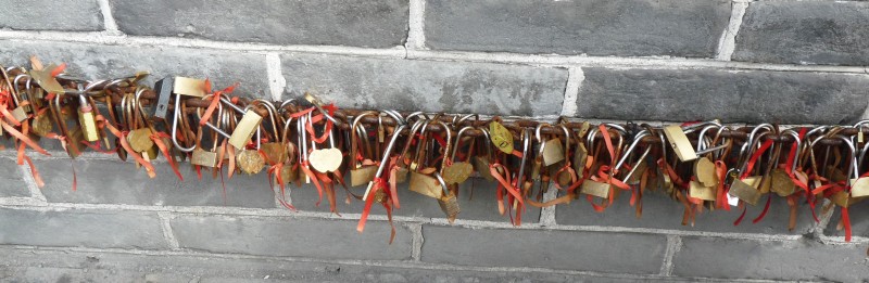 В некоторых местах, где особенно много туристов, поднявшись на башни стены, можно увидеть огромное количество замочков, это китайские молодожены таким способом берут в свидетели великую стену, которая своей вечностью обрекает на вечную любовь и их брак. Кстати, среди китайцев в случае развода принято снимать свой замочек, к счастью это происходит крайне редко, в стране один из самых низких процентов разводов.