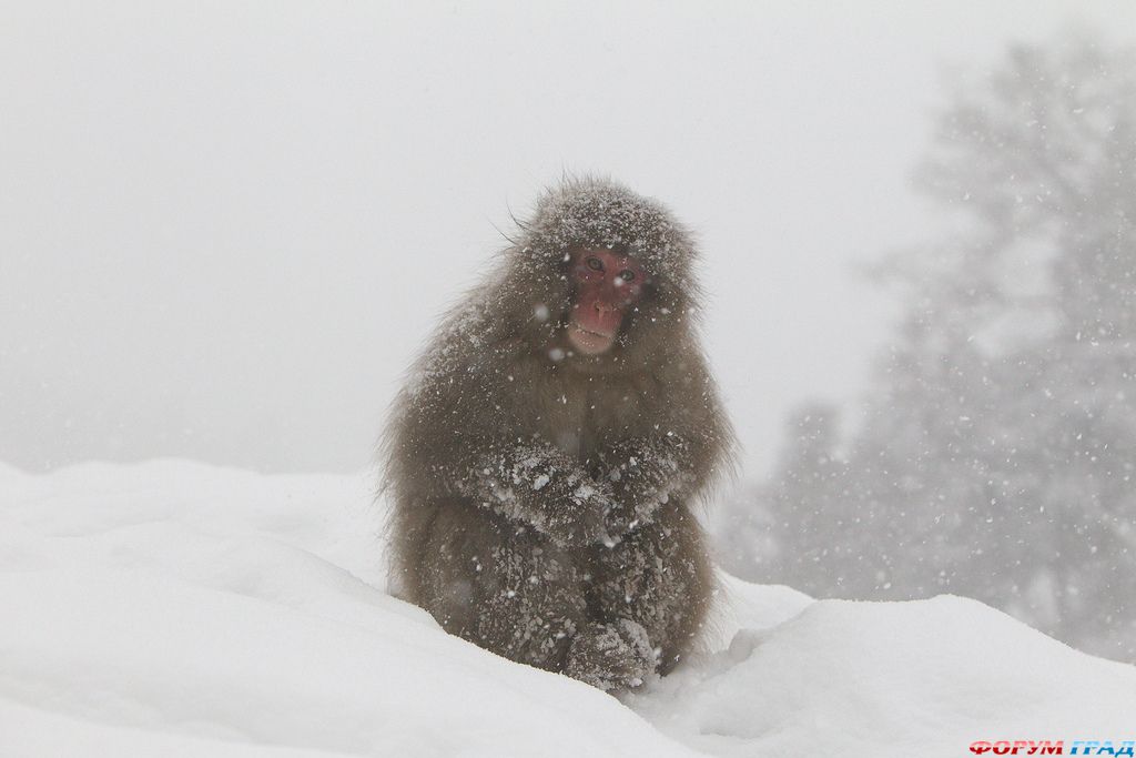 Очень непривычно видеть обезьян в снегу. Как-то так уж повелось, что обезьяна , лично у меня, ассоциируется с теплом, солнцем, пальмами и бананами.