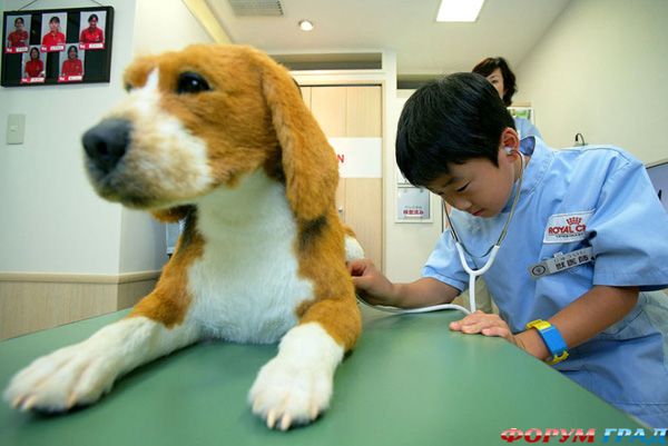 Интересно, а собака на фото, где малыш, желающий быть ветеринаром - она живая? Или это игрушка?