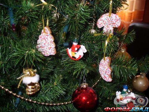 Печенье , изготовленное Вами, необходимо на маленьких крючочках, или красивых лентах развесить на ёлке.