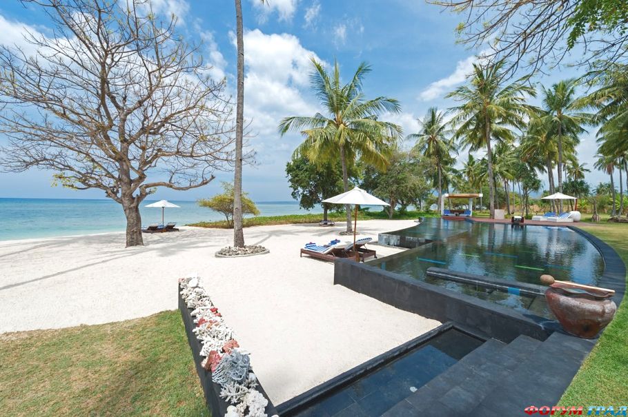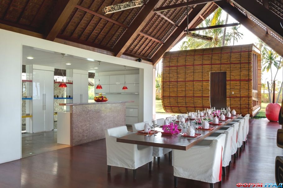 Вид, открывающийся из столовой роскошной индонезийской виллы, не имеет себе равных. Из спален и ванных комнат гости могут наблюдать постоянно меняющуюся перспективу – капризы моря, отражающееся в нём небо, соседние острова, далёкие горы и множество красочных рыбацких лодок вдалеке.