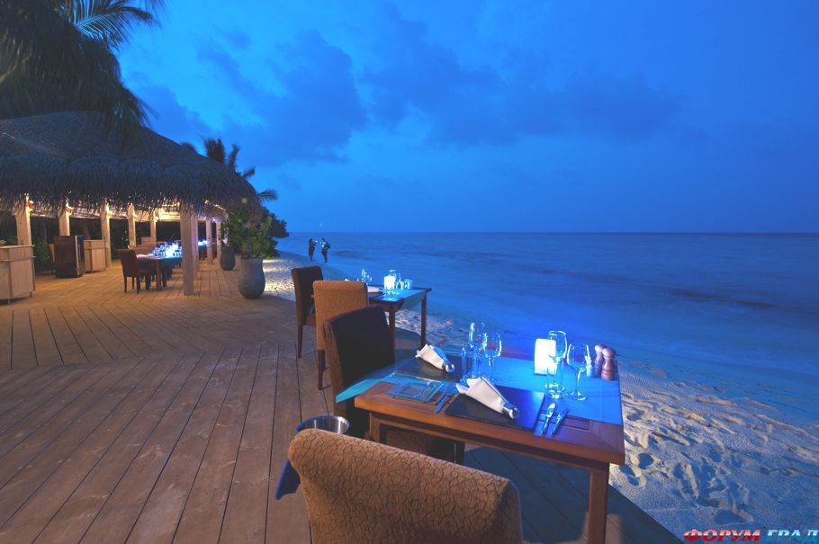 1. Спа-центр (массаж, обёртывания, процедуры для похудения, для лица, татуировки из хны, пирсинг), два бассейна, освещаемый теннисный корт, катамараны под парусом, водные лыжи, каноэ, банан, вейкбординг.2. Система «всё включено» - завтраки, обеды и ужины в одном из ресторанов Malaafaiy, Farivalhu, Haruge, чаепитие в Coffee Shop, алкогольные напитки, коктейли, концентрированные соки, пиво, вода. В баре можно угоститься прохладительными напитками и водой.
