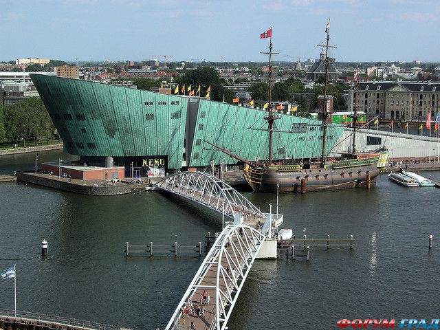 Если забраться на крышу этого здания, то можно увидеть весь Амстердам. Он здесь, как на ладони. Можно увидеть, например, как извивается речка Эй. Для полноты впечатления, конечно, на крыше побывать нужно. Однако, прежде всего, сюда едут, чтобы облачиться в белый халат и хотя бы на время стать научным сотрудником.