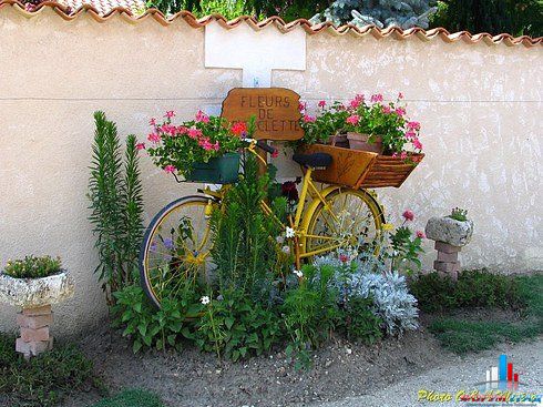 Мы под такой декор определили старую садовую тележку. Только подкрасили ее. Получилось очень красиво. Главное цветы правильно подобрать. Чтобы и ампельные сорта были, и кустовидные. Мы посадили петунии, агератум и виолы, нескольких видов. Получилось красиво. Только поливать пришлось по чаще, чем цветы на клумбах. Земля сохла очень быстро. Нужно будет капельный полив сделать в горшки из 0.5 литровых пластиковых бутылок.